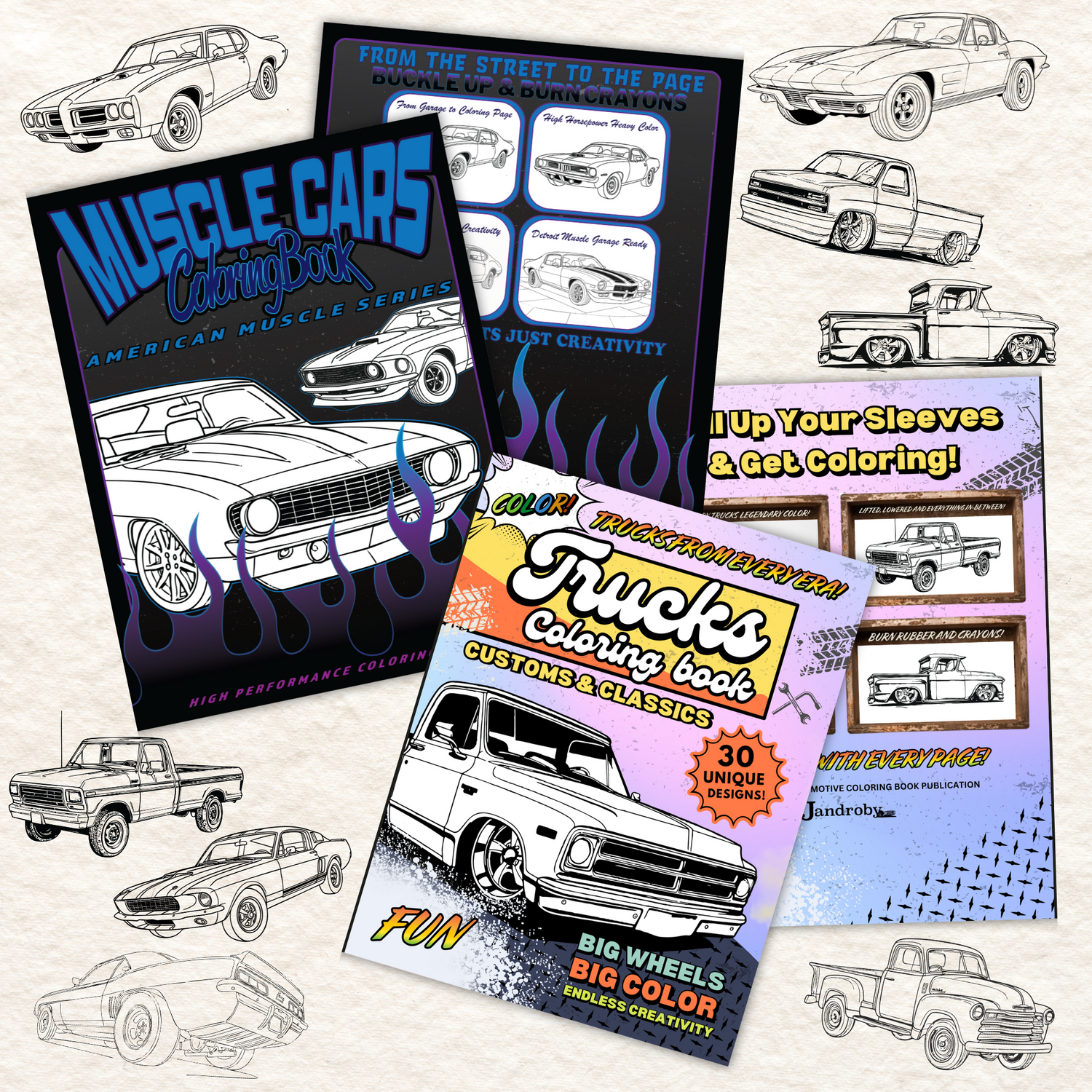 Unlock the full lineup with all three best-selling books in one bundle: Trucks, Muscle Cars, and Motorcycles. Perfect for car lovers, gearheads, riders, and anyone who wants hours of detailed, hands-on creativity.
